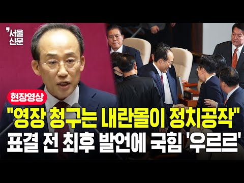 "여기서 다시 뵙겠습니다"...추경호 체포동의안 표결 전 작심 발언에 국힘 전원 '기립'