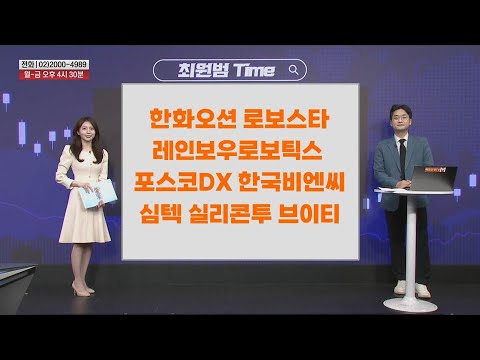 [최원범 Time] 한화오션 로보스타 레인보우로보틱스 ​​포스코DX 한국비엔씨 심텍 실리콘투 브이티