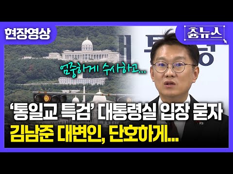[현장영상] '통일교 특검' 관련 대통령실 입장 묻자...김남준 대변인, 단호하게 "여야 싸움만은 아냐" #통일교 #이재명 #대통령실 #통일교특검 #전재수 #김남준 > 시사 뉴스