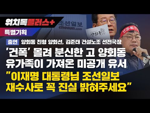 [워치독플러스] '건폭' 몰려 분신한 고 양회동 유가족이 가져온 미공개 유서, "이재명 대통령님 조선일보 재수사로 꼭 진실 밝혀주세요"