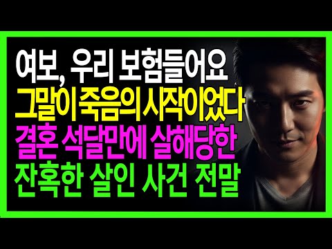 [충격실화] 여보, 우리 보험들어요! 그말이 죽음의 시작이었다! 결혼 석달만에 살해 당한 잔혹한 살인 사건 전말 |노후사연|감…
